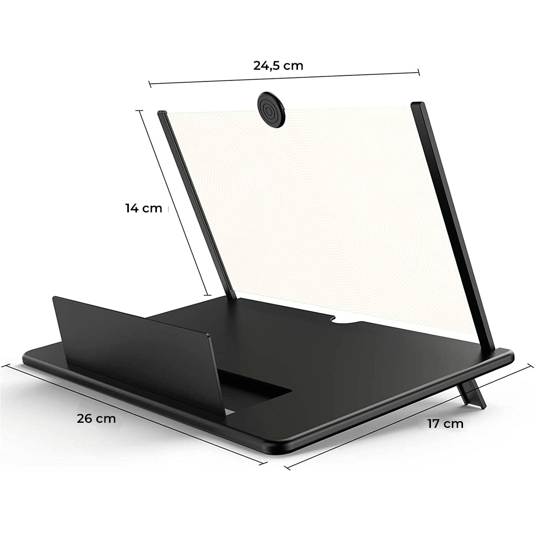 Ligero, compacto y fácil de llevar: Diseñado pensando en la comodidad y la portabilidad, nuestro amplificador de pantalla es ultraligero y compacto. Con su diseño delgado y elegante, puedes llevarlo contigo a donde vayas sin que ocupe mucho espacio en tu bolso o mochila. Ya sea en viajes, en la oficina o en casa, siempre tendrás tu pantalla ampliada al alcance de tu mano.