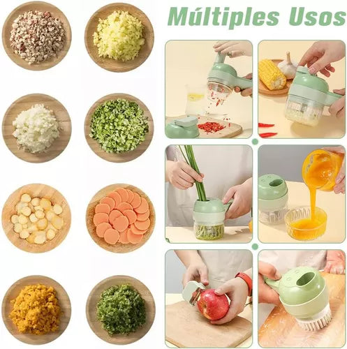 Limpieza sin Esfuerzo: Equipado con un cabezal de cepillo, nuestro cortador 4 en 1 facilita la limpieza de tus utensilios de cocina en poco tiempo, asegurando una experiencia culinaria sin complicaciones.