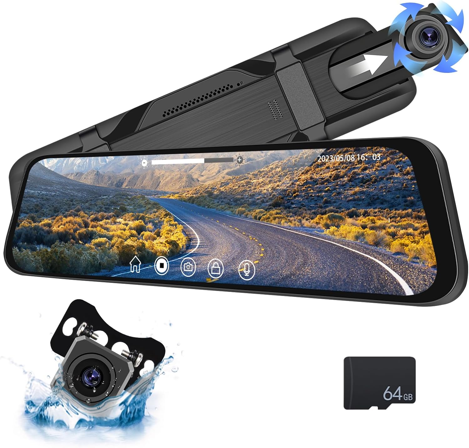ESPEJO RETROVISOR CON CÁMARA DELANTERA Y TRASERA MODELO 2024