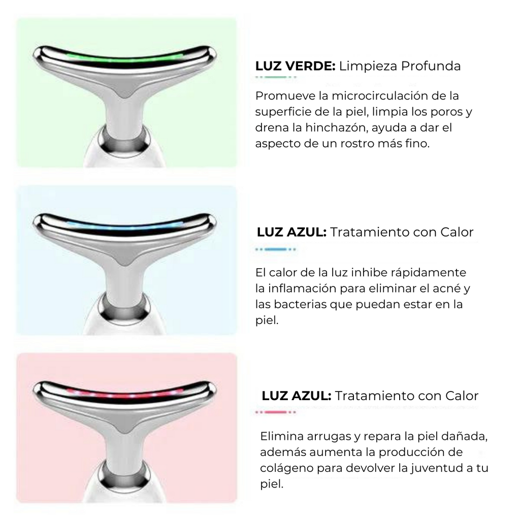 Masaje LED de Triple Acción: La combinación de masaje suave y luz LED revitalizante trabaja en armonía para reducir la papada y las arrugas, brindándote una piel más firme y joven.