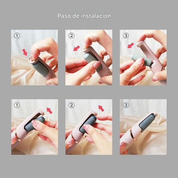 El Quita Grietas y Callosidades Eléctrico para Pies tiene dos lijas cilíndricas giratorias recubiertas de microfibras que ayudan a eliminarlo todo. Cada almohadilla tiene un propósito específico, ¡así que cuando se combinan dan el resultado perfecto!