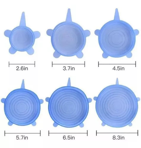 ¡Con nuestras tapas ajustables de silicona, tendrás una solución versátil y práctica para mantener tus alimentos frescos y tu cocina organizada! ♻
